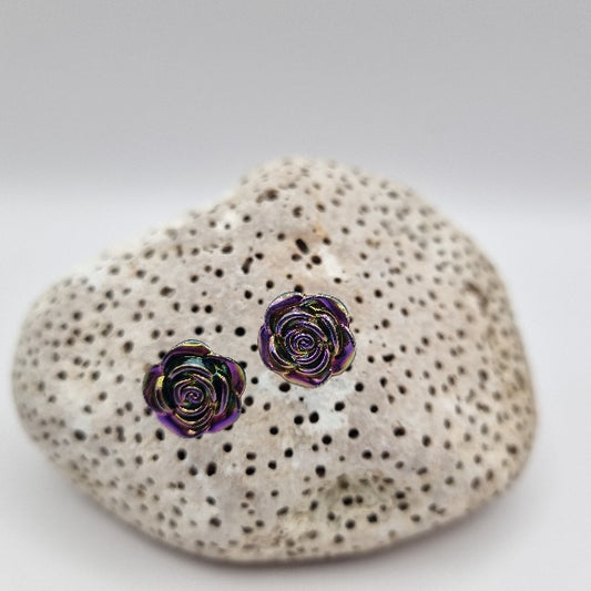 Acero Inoxidable Pendientes de Botón Rosas con tonos Metalizados.