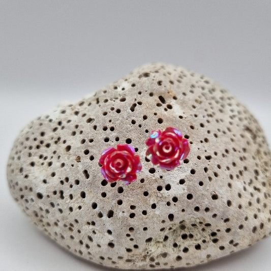 Pendientes de Botón Rosas con Pinceladas Nacaradas