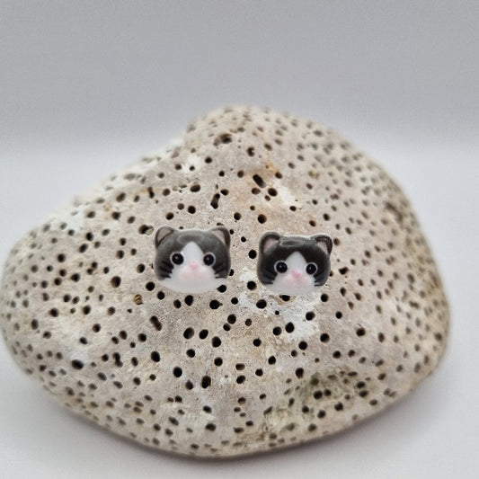 Pendientes de Botón Carita de Gatitos de la Suerte