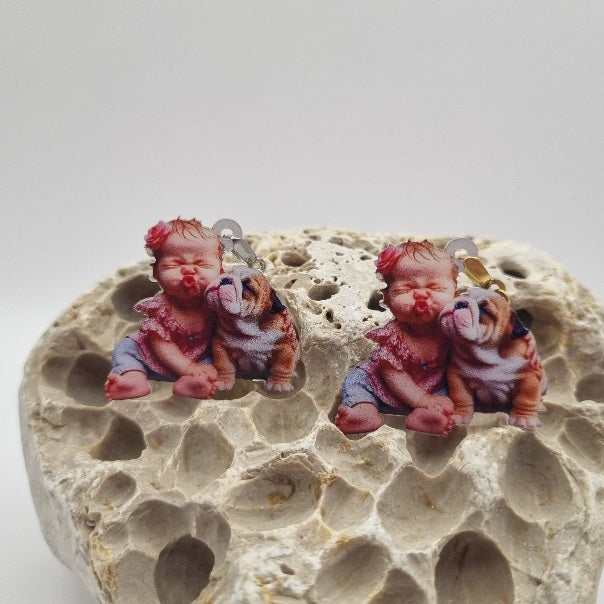Acero Inoxidable Pendientes 2D Bulldog Inglés y Francés