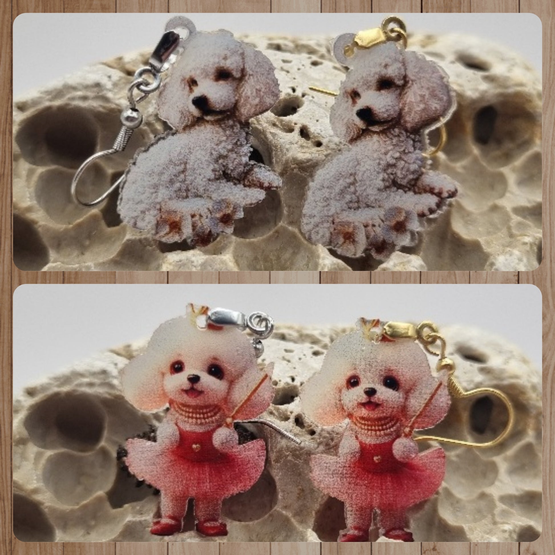 Acero Inoxidable Pendientes 2D Perro Caniche