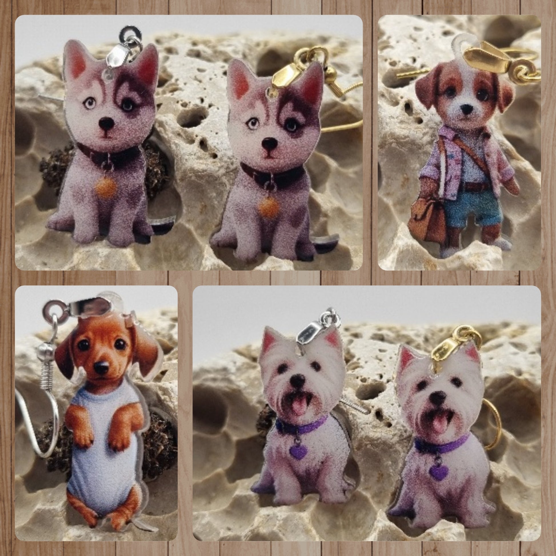 Acero Inoxidable Pendientes 2D Perros Varios