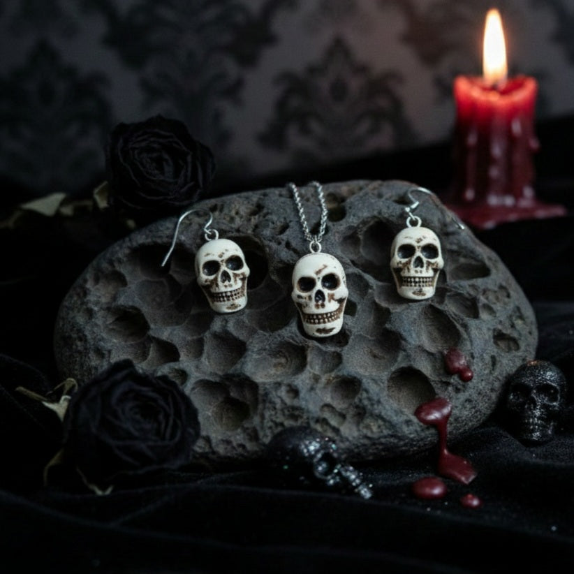 Plata de Ley Pendientes y/o Collar Calaveras de la Suerte