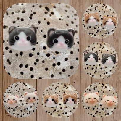 Pendientes de Botón Carita de Gatitos de la Suerte
