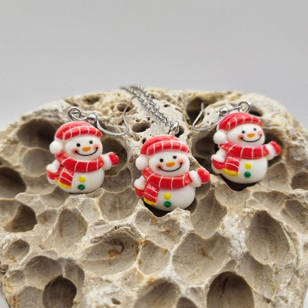 Plata de Ley Pendientes y/o Collar Muñequito de Nieve Navideño