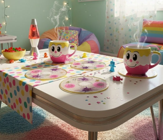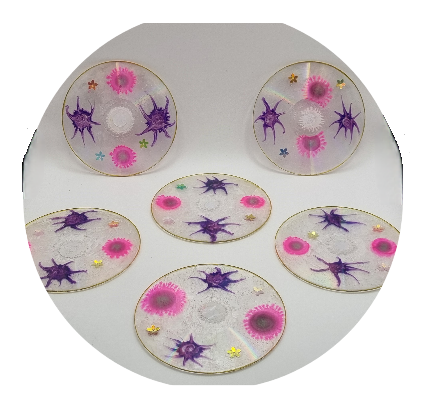 Exclusivos y Originales Pack de 6 Posa Vasos Acrílicos cd,s con Acabado Brillante y Protegidos con Resina Epoxi No Tóxica, Resistente y de Alta Calidad.