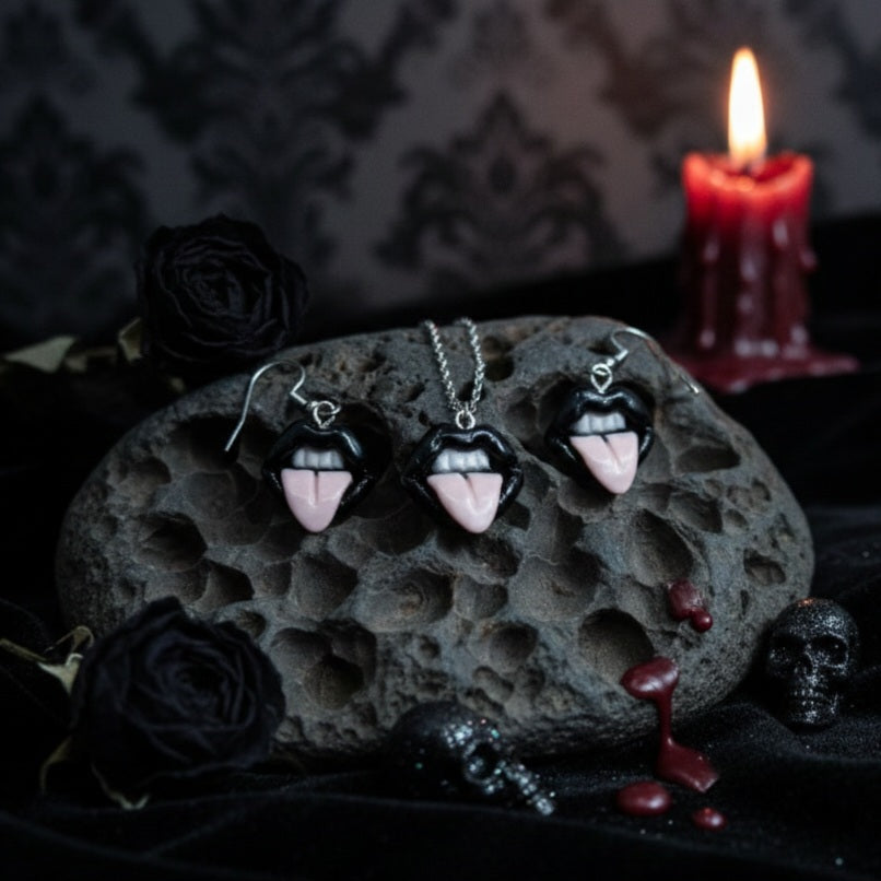 Plata de Ley Pendientes y/o Collar Labios Lengua