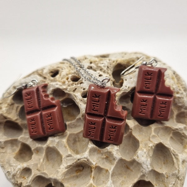 Pendientes y/o Collar Tableta de Chocolate Milk