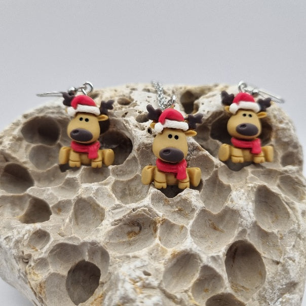 Plata de Ley Pendientes y/o Collar Reno Navideño